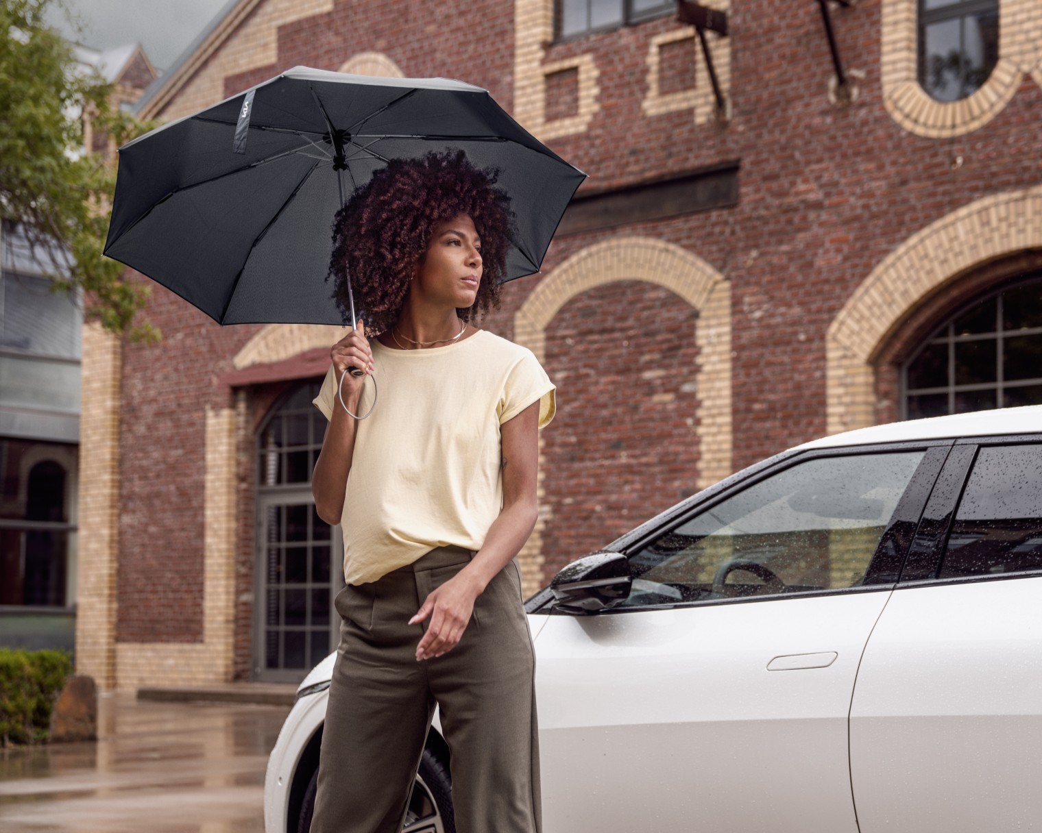 Eleganz trifft Umweltbewusstsein: Der Kia Taschenschirm kombiniert klassischen Stil mit moderner Nachhaltigkeit. Gefertigt aus recyceltem Polyester-Pongee, bietet er zuverlässigen Schutz vor Regen – und leistet gleichzeitig einen Beitrag zur Reduzierung von Plastikabfällen.